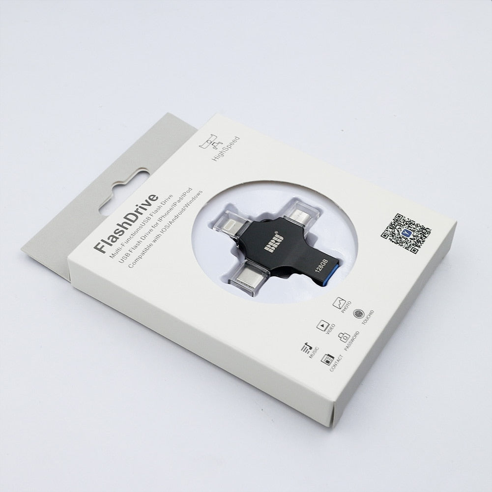 Notre clé USB est doté de 4 ports différents : USB, iPhone, Android et Type-C.