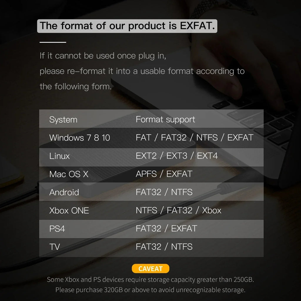 Il vous suffit de brancher pour commencer à l'utiliser. Notre disque dur externe est conçu pour une utilisation simple et rapide, sans installation préalable ! Compatible avec divers systèmes d'exploitation, notamment Windows 10/8/7/Vista/XP, Mac OS X et Linux OS, il s'adaptera parfaitement à votre environnement actuel.