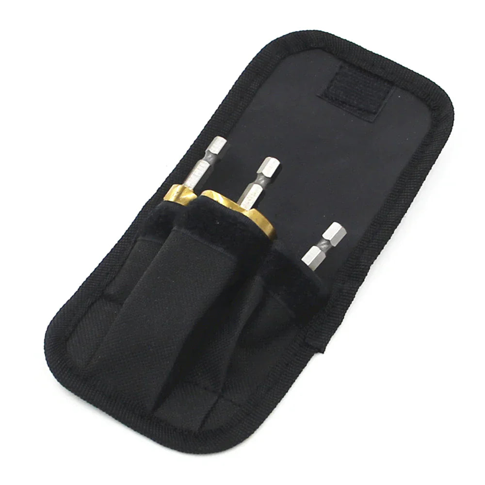Ce kit contient trois forets standard qui remplacent 28 forets simples ! Ils fournissent un poinçon central automatique et un impact automatique. Ils résistent aux chocs et font un effet ressort lorsqu'il sont appuyés contre la surface. Le capuchon réglable régule la force d'impact.