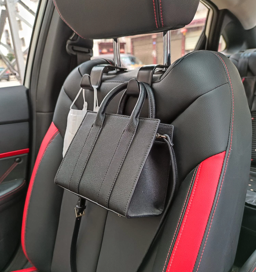 Grâce à nos crochets appui-tête vous pourrez suspendre votre sac à main dans votre voiture. Votre sac sera à l'abri des pieds des passagers puisqu'il ne traînera plus au sol et sera beaucoup plus accessible si vous avez oublié de sortir ou de mettre quelque chose à l'intérieur avant de prendre la route.