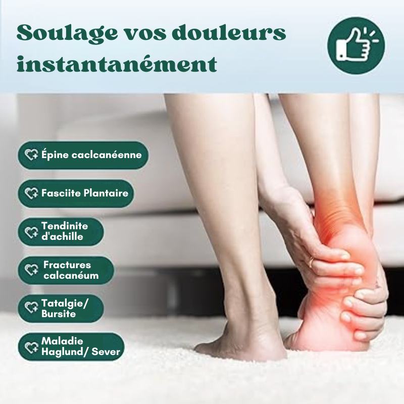 Que vous soyez actif au travail, athlète passionné ou simplement à la recherche de confort quotidien, ces semelles vous libéreront de toutes les douleurs liées au talon et à faire disparaître :