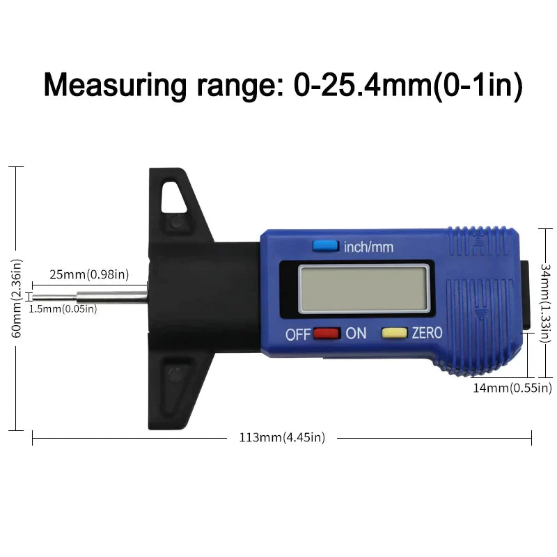 Le Testeur d'usure des pneus Numérique vous donne une mesure précise de la profondeur de la sculpture de vos pneus, vous permettant de détecter les signes d'usure prématurée.